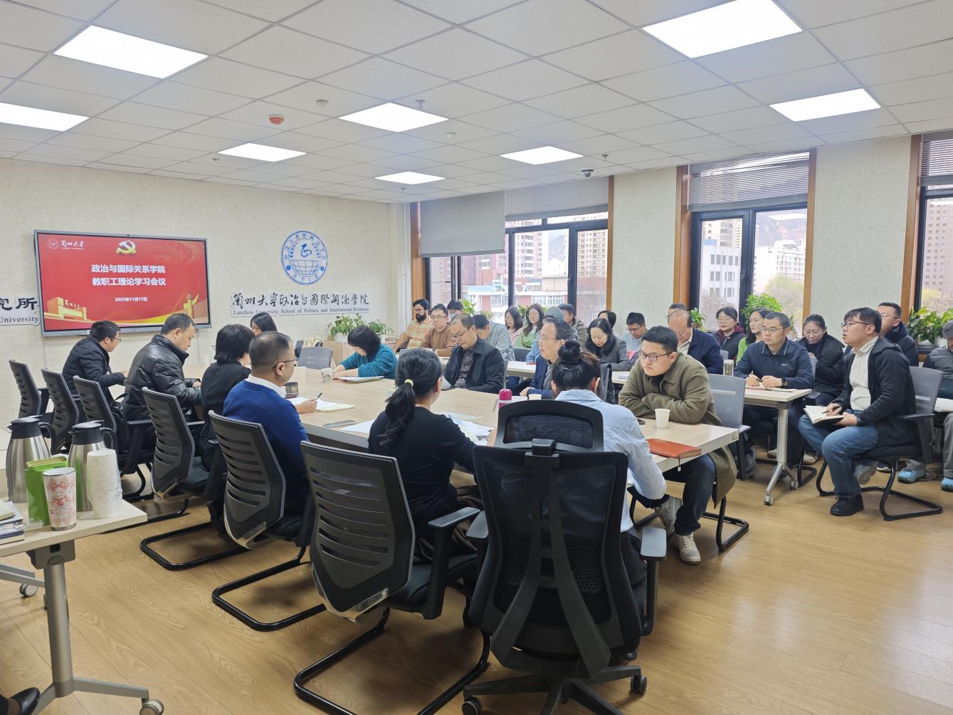 、“一带一路”研究中心全体教职工参会。会议由学院党委书记常虹主持。